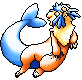 Aquamink is a rare Toshimon which has a tail that is a large mass of muscle enabling it to swim up to 100mph. It is versatile which can swim fast and strike powerful attacks with its arsenal of capabilities whether its digging, swimming, or hitting. Aquamink is slippery and covered in thick fur rendering them resistant to the cold, its whiskers can detect vibrations from its surroundings while its tail can help launch itself up in a high jump. Despite its happy-looking appearance, Aquamink is sneaky and merciless in combat, it is fond of launching unexpected attacks and follows up a flurry of combos. It has strong claws, powerful tail, and sensitive whiskers that allow this Toshimon to deal powerful hits and do agile evasions. It's so powerful that it can conjure a large mass of water in a high tide and ride it to overwhelm its opponents, or shakes down their stability by striking the ground using its powerful tails with a Tectonic Shift.