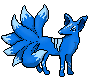 Vulpes is a foxlike Toshimon with seven tails, and deep blue fur with a light blue accent most visible on its tails. It has piercing eyes, pointy ears, slender legs, and no visible claws. Vulpes might looked tame and friendly but be careful and making it angry. Vulpes are the protector of the mystical forest of Asta and the peacemaker in some low level Toshimons. It serves a great leader that is easy to approach to but scary when you disobey its orders. This Toshimon is a quiet one because when it opened its mouth, you might turn into ash. Vulpes' Flametorch and Flame-nado is quite a powerful attack and its long limbs are great for running and chasing an opponent down. Also avoid with making an eye contact with Vulpes because its gaze might pierce deep within your soul and it will send out chills all over your body making you scared for days.